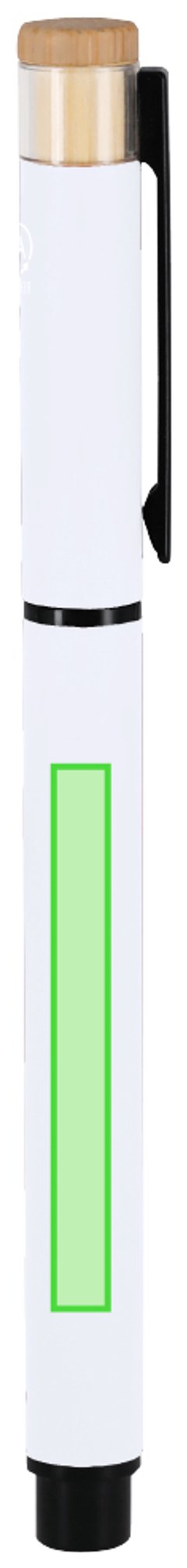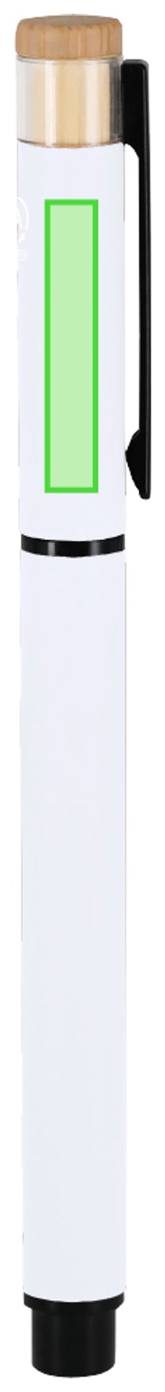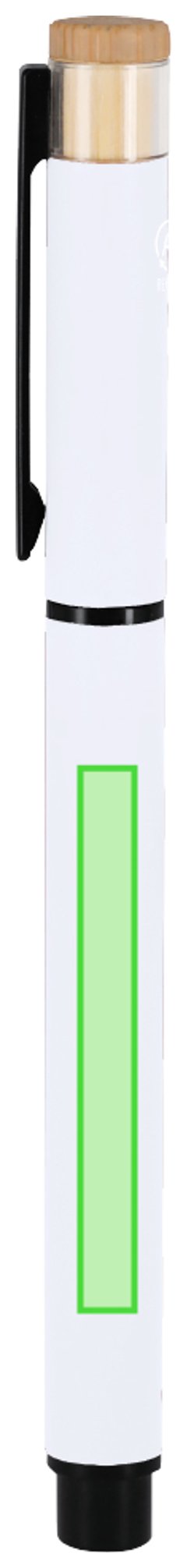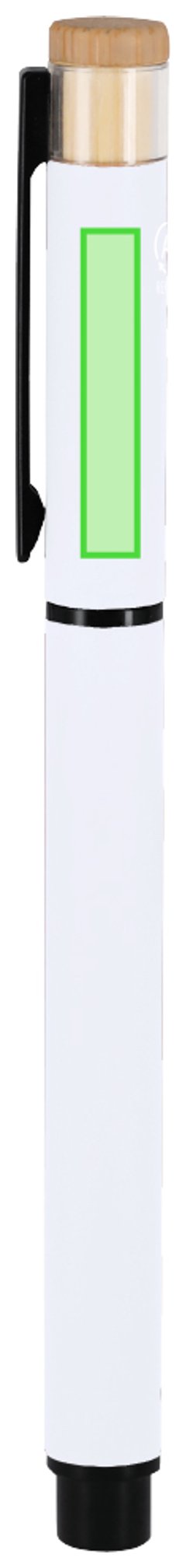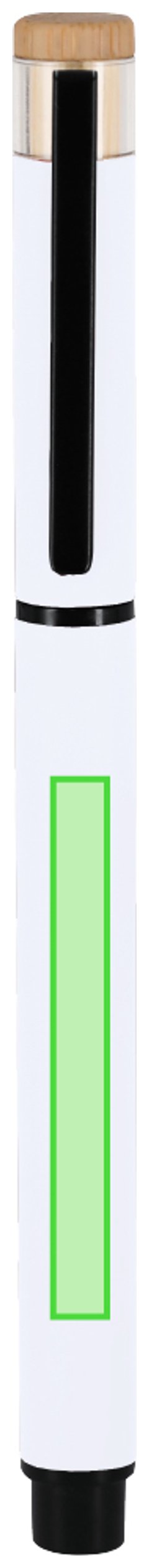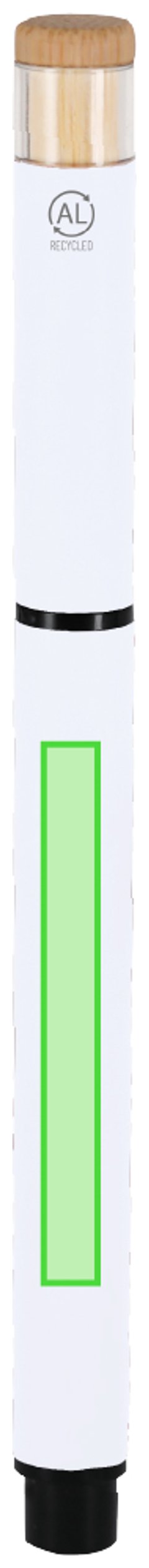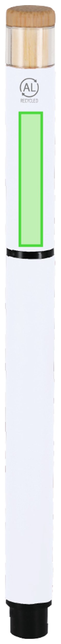 Elegante roller fabricado en bambú y Aluminio Reciclado. Con cuerpo en acabado gomoso. Clip y empuñadura en negro. Con cartucho jumbo, en tinta azul y con cierre de capucha. Con distintivo logo de Aluminio Reciclado.