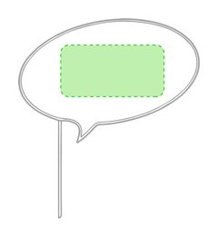 Selfie bocadillo en llamativo color amarillo con amplia superficie de impresión. En papel de alto gramaje con mango de madera.