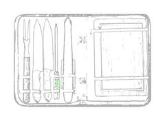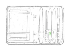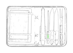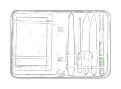 Set de barbacoa de línea nature y 6 accesorios fabricados en metal con mango de madera. Incluye 2 cuchillos, afilador, trinchador y pinzas, con tabla de bambú para corte y presentación. Presentado en estuche indvidual de resistente poliéster, con sujeciones elásticas interiores para los distintos utensilios.
