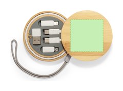 Completo set de cables cargadores fabricado en fibra de trigo, con estuche de bambú pulido y asa de transporte. Incluye cable con capacidad de transferencia de datos y múltiples conexiones, con cabezales Micro USB, Tipo C y Lightning. 5V DC 3A. Presentado en caja diseño kraft. Elaborado con elementos vegetales para así fomentar la utilización de materias primas naturales y reducir las emisiones contaminantes.