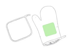 Set de cocina con agarrador y manopla en material TC -combinado de algodón y poliéster-. En variada gama en vivos colores con interior en blanco. Una cara lisa especialmente diseñada para impresión y cinta para colgar.