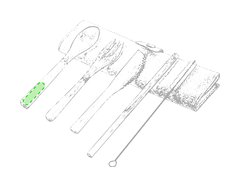Set de cubiertos de línea nature fabricados en bambú pulido. Incluye tenedor, cuchara, cuchillo y pajita con cepillo limpiador. Presentados en funda plegable de canvas, con elástico interior para una firme sujeción de las piezas y cierre de seguridad con corchete.