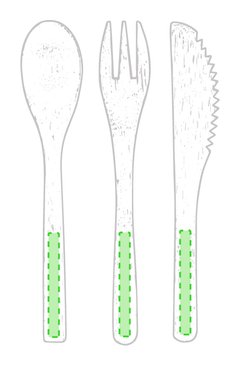 Set de 3 cubiertos de línea nature. Fabricados en bambú, incluye tenedor, cuchara y cuchillo. Presentados en funda de algodón con cordón auto cierre.