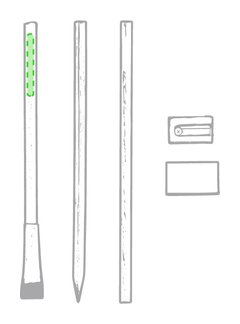 Set de 5 piezas en estuche cartón reciclado. Incluye 2 lápices de madera (sin afilar) con cuerpo cilíndrico de acabado natural, bolígrafo en cartón, sacapuntas de madera y goma de borrar. Tapa en cartón.