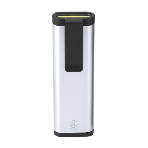 Set de herramientas fabricado en Aluminio Reciclado. Con función 2 en 1; estuche con forma de linterna de 4LEDs, con interior de almacenamiento de 6 herramientas; mango multifunción para cabezales compatibles de estrella y planos. Incluye práctico clip para llevarlo siempre contigo. Pilas a botón incluidas.