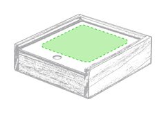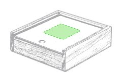 Set de juegos con baraja francesa y dados de madera, presentado en estuche individual de madera con tapa deslizante.