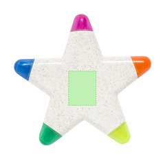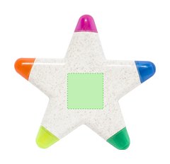 Original marcador fluorescente de cinco colores fabricado en caña de trigo. Con cuerpo de estrella en suave acabado brillante, especialmente diseñado para marcaje a todo color. Con capuchas translúcidas a juego con el marcador. Presentado en bolsa de papel reciclado. La caña de trigo fomenta la utilización de materias primas naturales, reduciendo así las emisiones contaminantes.