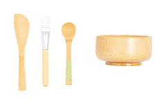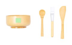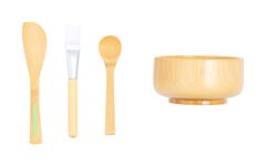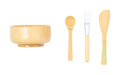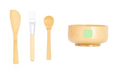 Completo set de mascarilla fabricado en bambú, ideal para una correcta aplicación de la mascarilla facial . Compuesto por 4 piezas: cuenco de elegante diseño, cuchara, paleta y brocha de suaves cerdas. Fácil de limpiar y presentado individualmente en caja de diseño kraft.