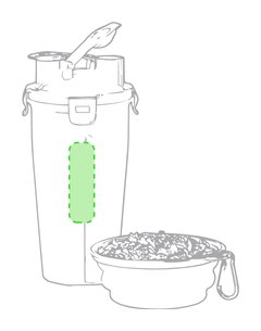 Set para mascotas. Incluye práctico bidón de 900ml con 2 compartimentos -sólidos y líquidos- y cierre de seguridad. Bowl plegable a juego, con mosquetón metálico de fijación.