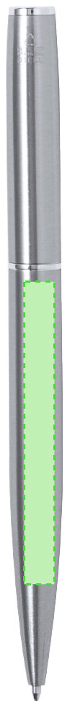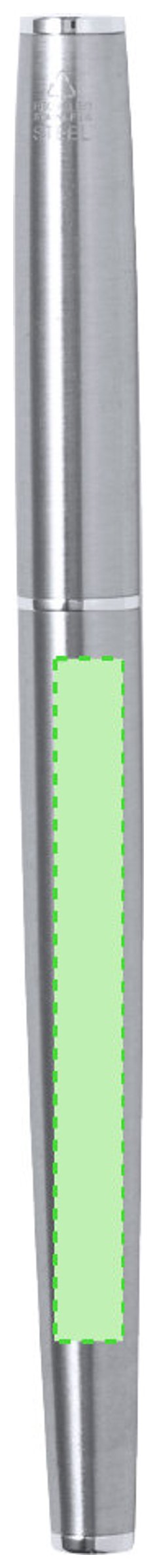 Set de bolígrafo y roller fabricados en Acero Inox Reciclado. Bolígrafo de mecanismo giratorio y roller con capucha, ambos con clip metálico y en tinta azul, con cuerpo de acabado brillante y logotipo Acero Inox Reciclado incluido. Presentados en un estuche de corcho. El acero es uno de los materiales más demandados y que puede encontrarse casi en todas partes, desde productos de uso diario a grandes construcciones. Con innumerables propiedades, entre las que cabe destacar la durabilidad y su alto grado de reutilización, convirtiéndolo en una alternativa muy valorada en soluciones de sostenibilidad. Debidamente tratado, permite obtener nuevos recursos de infinita utilización.