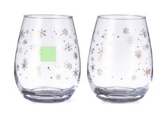 Set de 2 vasos con original diseño de copos de nieve y 500ml de capacidad. Fabricados en cristal, con área de marcaje especial en el frontal. Presentado en caja de diseño en color negro con ilustración en color dorado.