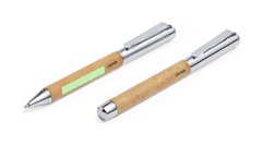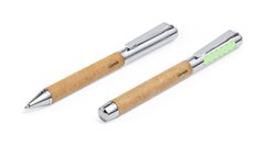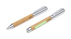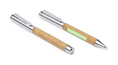 Set de bolígrafo y roller metálicos, con cuerpo recubierto en cuero reciclado. Incluye: Bolígrafo fabricado en metal cromado y con cuerpo recubierto en cuero reciclado. Elegante clip metálico y accesorios a juego. De mecanismo giratorio y en tinta azul, con distintivo cuero reciclado en cuerpo. Roller fabricado en metal cromado y con cuerpo recubierto en cuero reciclado. Elegante clip metálico y accesorios a juego. Con capucha y en tinta azul, con distintivo cuero reciclado en cuerpo. Set presentado en estuche individual de diseño kraft con funda a juego. El cuero reciclado rescata las fibras desechadas en los procesos de fabricación del cuero, minimizando el desperdicio de material, contribuyendo a reducir el impacto ambiental y manteniendo a la vez sus propiedades originales.