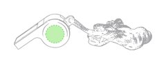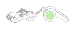 Divertido silbato de clásico diseño en amplia gama de vivos colores con cinta para el cuello a juego.