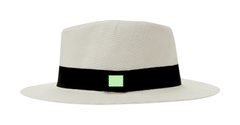 Sombrero de alta calidad confeccionado en paja de papel blanca, con cinta en la base de color negro. Ajustable desde el interior, con cinta exterior y confortable cinta interior.