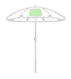Sombrilla de playa de 8 paneles de resistente nylon e interior en color gris plateado con protección UV. En variada gama de vivos colores, de 150cm de diámetro, con faldones laterales ribeteados, tubos metalizados en color blanco y ajustable en altura. Presentada en funda de nylon con cinta de transporte para hombro.
