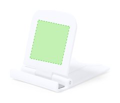 Soporte para smartphone y tablet fabricado en resistente ABS. De diseño compacto y plegable para poder llevarlo a cualquier lado. Con distintas posiciones de inclinación y almohadillas de sujeción. Presentado en bolsa individual reciclada.
