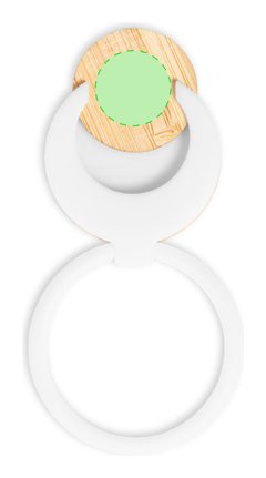 Soporte multifunción para smartphone, con moneda para carro de la compra integrada y anilla/soporte plegable. Cuerpo fabricado en resistente ABS de acabado blanco, con moneda en bambú. Con adhesivo de fijación extra fuerte y libre de residuos al despegarlo del dispositivo.