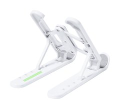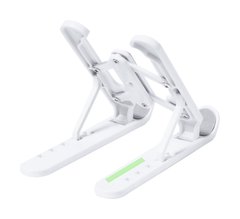 Soporte plegable para tablet. Fabricado en resistente ABS con protecciones antideslizantes para un firme ajuste al dispositivo en color gris. Regulable en altura de 5 posiciones y plegado de tamaño compacto.