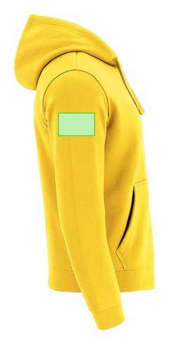 Sudadera unisex con capucha forrada a tono de doble tejido. Confeccionada en algodón y poliester en suave felpa perchada de 280 g/m2. Cierre frontal de cremallera completa a tono. Con cordón ajustable y ojales metálicos a juego. Bolsillo tipo canguro. Cubrecosturas en el cuello. Puños y la cintura en punto canalé 1x1 con elastano para mayor ajuste y confort.
