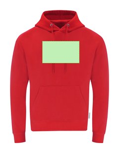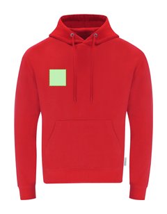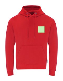 Sudadera con capucha Unisex de Algodón Orgánico y Poliéster Reciclado, en suave felpa perchada de 280 g/m2. Con capucha forrada de doble capa, cordones redondos ajustables -con topes a juego- y ojales metálicos. Puños y cintura de punto canalé de elastano y bolsillo frontal tipo canguro. Cubrecosturas reforzado en cuello, con etiqueta distintiva eco.