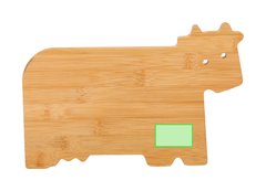 Tabla de cocina con original diseño en forma de vaca, fabricada en suave bambú, muy fácil de limpiar y guardar.