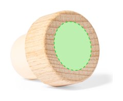 Tapón reutilizable para botella, con parte superior en madera natural y parte inferior hermética.