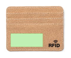 Elegante tarjetero fabricado en corcho natural. Con 6 compartimentos independientes para tarjetas y tecnología de seguridad RFID (Identificación por Radio Frecuencia) que mantiene seguros tus dispositivos de transmisión de identidad. Distintivo RFID en el exterior.