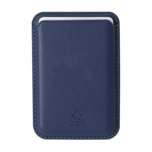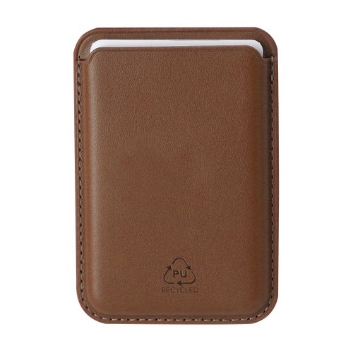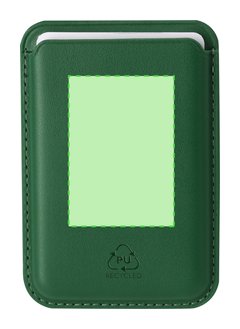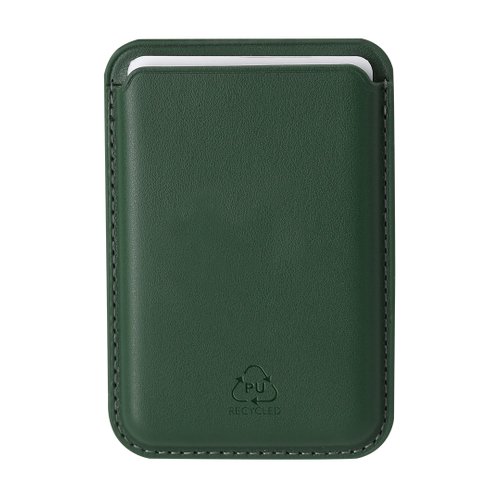 Funda tarjetero en elegante PU reciclada. Con sistema de fijación magnética. Incluye orificio en la parte trasera para fácil extracción de tarjetas. Con distintivo PU reciclado.