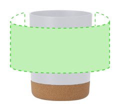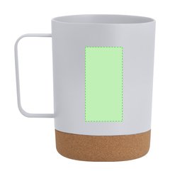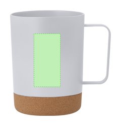 Taza fabricada en resistente PP Reciclado y corcho natural. Con 400 ml de capacidad. Distinguido diseño con original asa cuadrada. El PP reciclado es un plástico reciclado y altamente reciclable, de gran resistencia y apto para multitud de aplicaciones.
