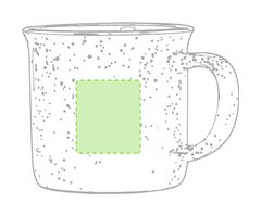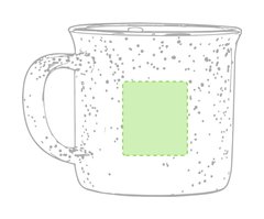 Taza de cerámica de 350ml de capacidad con diseño vintage. En combinación de exterior en colores moteados e interior a juego, con borde negro. Presentada en caja individual acabado kraft.
