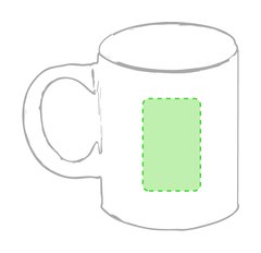 Taza de cerámica de alta calidad de 350ml de capacidad. Parte exterior en vivos colores, especialmente diseñada para marcaje en láser, e interior en color blanco. Al grabar el logotipo en la parte exterior, se muestra el color del interior de la taza. Presentada en caja individual.