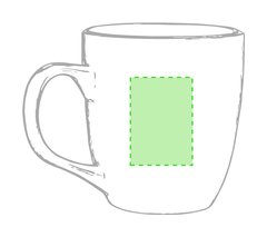 Taza de cerámica de 440ml de capacidad con exterior en variada gama de vivos colores e interior en color blanco. Presentada en caja individual.