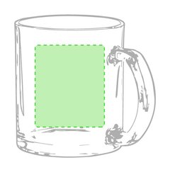 Taza transparente de cristal de 350 ml de capacidad, especialmente diseñada para marcaje en sublimación. Presentada en caja individual de diseño kraft.
