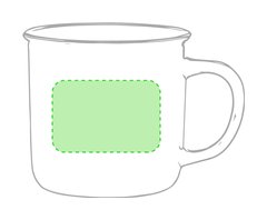 Taza de cerámica de 300ml de capacidad con diseño vintage. En elegante diseño bicolor, con anilla coloreada en el borde y cuerpo en color blanco. Especialmente diseñada para marcaje en sublimación. Presentada en caja individual.