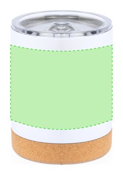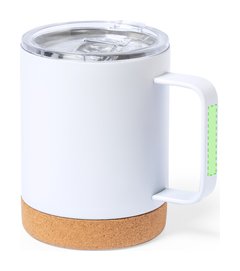 Taza térmica de acero inox de doble pared y 330ml de capacidad. Especialmente diseñada para marcaje en sublimación y de acabado en blanco brillo. Con dosificador en tapa, libre de BPA, y base en corcho natural. Presentada en caja individual de diseño kraft.