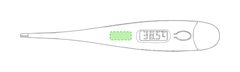 Termómetro digital de fácil uso en variada gama de colores. Presentado en resistente estuche transparente. Pilas de botón incluidas.
