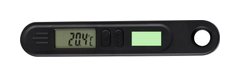 Termómetro digital con sonda metálica. Óptimo para la medición de temperatura en el interior de los objetos gracias a su punzón metálico. Práctico mecanismo de plegado para guardarlo de forma segura en cualquier sitio, con anilla e imán en la parte trasera. Pantalla LCD, con botón ON/OFF y posibilidad de medir en grados centígrados (Cº) o Fahrenheit (ºF). Rango de medición entre -50ºC y hasta 300ºC, con manual de instrucciones en español e inglés. Alimentado por pila de botón (incluida) y presentado individualmente en caja de diseño kraft.