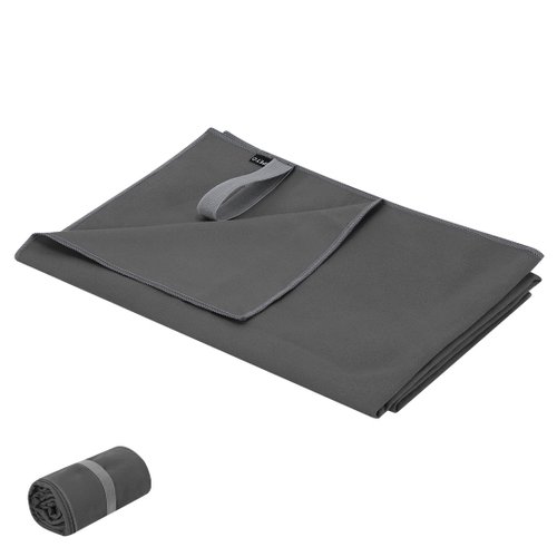 Toalla de 130x80cm ultra absorbente confeccionada en RPET de 200 g/m2. Dispone de cinta elástica para cuando se pliega poder guardarla, presentada en bolsa de poliéster RPET para fácil transporte. Con distintivo logotipo RPET.