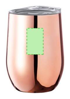 Vaso térmico de acero inox de doble pared y 350ml de capacidad, con recubrimiento exterior de cobre galvanizado. Dosificador en tapa y libre de BPA. Presentado en caja individual negra de diseño.