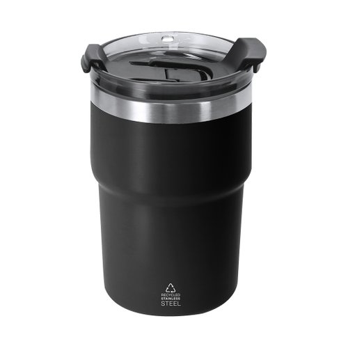 Vaso térmico con doble pared de 350 ml de capacidad. Fabricado en Acero Inoxidable Reciclado en acabado semi mate. Cuenta con doble sistema de bebida, adaptándose a las preferencias de uso. Con tapa de sistema de sellado hermético. Libre de BPA. Con distintivo de Acero Inoxidable Reciclado.