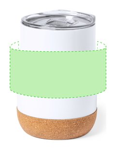 Vaso térmico de acero inox de doble pared y 330ml de capacidad. Especialmente diseñado para marcaje en sublimación, acabado en blanco brillo. Con dosificador en tapa, libre de BPA, y base en corcho natural. Presentado en caja individual de diseño kraft.