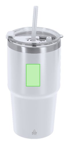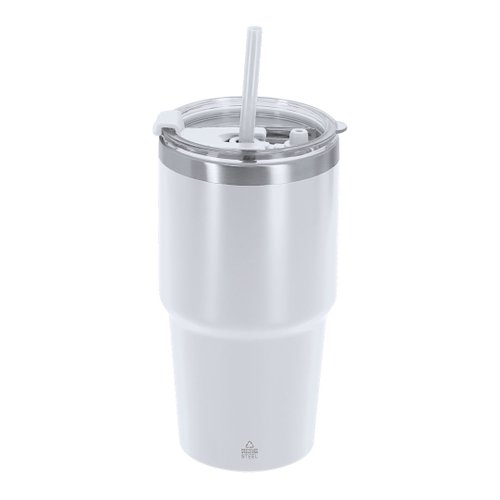 Vaso térmico fabricado en acero inox reciclado de doble pared y 650 ml de capacidad. Cuenta con doble sistema de bebida: orificio con cierre hermético y pajita integrada, adaptándose a las preferencias de uso. Cuenta con tapón para cierre hermético cuando se extrae la pajita. Es ideal para tener en tu escritorio, mesa o en cualquier superficie donde disfrutar tranquilamente de tu bebida favorita. Con logotipo Acero Inox Reciclado.