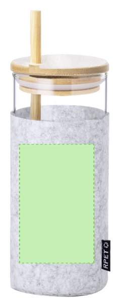 Vaso de alta calidad y 450ml de capacidad. Cuerpo fabricado en cristal de borosilicato, libre de BPA, que ofrece una resistencia y durabilidad excepcionales, alargando su vida útil y pudiendo ser reutilizado infinidad de veces. Incluye funda en suave y sostenible fieltro RPET, tapón de bambú a presión con orificio para pajita, y pajita reutilizable de bambú. Con etiqueta distintiva RPET. Presentado en caja individual de diseño eco. El fieltro RPET reciclado es fruto de la combinación del proceso de reciclaje de materiales plásticos junto a la técnica milenaria de fabricación del fieltro, dando como resultado un material de eco-tendencia que, además de ser de origen reciclado, también se convierte en reciclable.