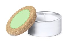 Vela aromática, con cera vegetal y vainilla. Tarrito fabricado en aluminio, con tapón en corcho natural. Presentada en caja individual de diseño kraft.