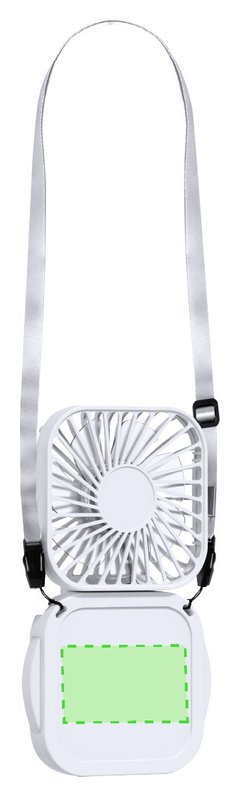 Ventilador portátil fabricado en resistente ABS. Este práctico dispositivo cuenta con tres velocidades, con un lanyard para un uso cómodo. Se alimenta mediante una batería de 400 mAh, compatible con conexiones USB , y presenta indicadores de luz para conocer el nivel de carga de la batería. Presentado individualmente en caja de diseño kraft.