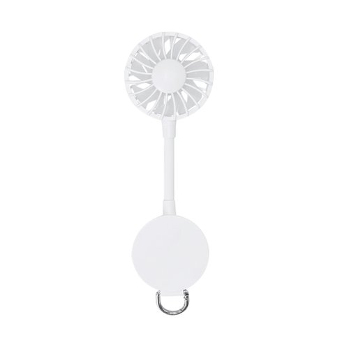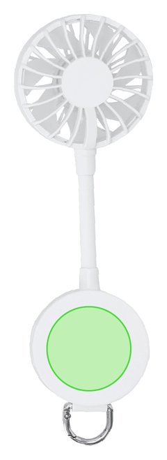 Ventilador multiposición con rotación de 360°, fabricado en ABS de color sólido y equipado con imán magnético para la sujeción con el móvil. Incluye soporte ajustable. En el extremo inferior cuenta con un mosquetón y anilla metálica. Dispone de 3 velocidades regulables mediante botón, e incorpora cable de carga USB A a USB C en el mismo color, junto con una batería de 300 mAh. Diseño compacto, funcional y portátil, ideal para uso personal en exteriores o interiores. Componentes resistentes y ensamblaje magnético para fácil plegado y transporte.