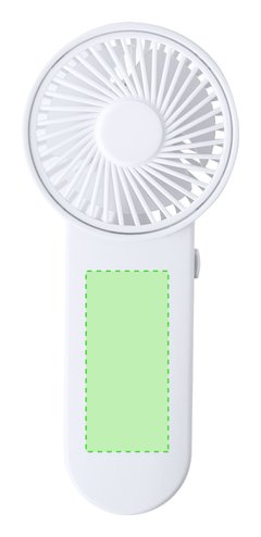 Ventilador de mano en resistente ABS. Con botón lateral de on/off y disponible en variada gama de vivos colores. Alimentación a pilas -2xAA no incluidas. Presentado individualmente en caja.