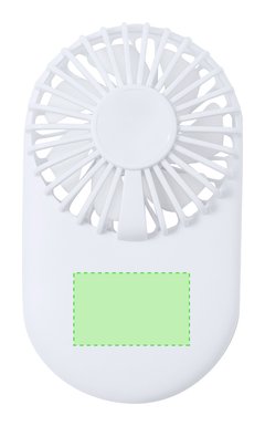 Ventilador portátil fabricado en resistente ABS. Cuenta con tres velocidades y soporte integrado para smartphone. Se alimenta mediante una batería de 300 mAh, con indicadores de luz que muestran el nivel de carga y cable Micro USB incluido. Presentado individualmente en caja de diseño kraft.
