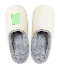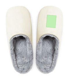 Par de zapatillas unisex. Fabricadas en suave y confortable algodón en color natural e interior acolchado con revestimiento afelpado en color gris que mantiene los pies a la temperatura adecuada. Disponibles tallas 36-38 y 42-44. Presentadas en bolsa individual reciclada.