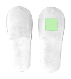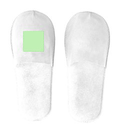 Par de zapatillas unisex fabricadas en non-woven. Confortable interior con base acolchada y pespuntes de acabado termosellado, con suela antideslizante. Talla única 36-43. Presentadas en bolsa reciclada.